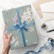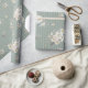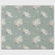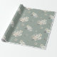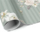 Elegant sage green wrapping paper featuring delicate watercolor florals and subtle vertical stripes.