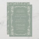 Bring timeless sophistication to your celebration with this Vintage Victorian Sage Green Floral Wedding Invitation, featuring intricate white floral line art framing your wedding details on a soft sage green background. Inspired by Victorian romance and vintage botanical illustrations, this design blends elegant tradition with modern simplicity for a truly refined look.