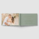 This elegant wedding guest book is perfect for stylish, modern weddings. The guest book features your names and wedding date in gold foil lettering with a sage green background. Add your custom text to the spine of the minimalist wedding guest book. The back of the foil guest book features your horizontal engagement photo.