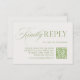This refined RSVP card features sage green serif typography with a flowing script accent and a QR code for guests to respond online. Ideal for modern weddings that blend timeless elegance with digital convenience. Includes space for your wedding website and a deadline for replies. Perfect for formal garden weddings, summer celebrations, or traditional events with a modern touch.