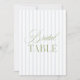 This elegant table number features a soft blue striped background with refined sage green serif typography and subtle script accents. Designed for garden weddings, refined receptions, and timeless outdoor celebrations.