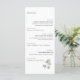 The airy design highlights each course with graceful spacing and balanced alignment, making it easy for guests to read while complementing a wide range of wedding styles. A gentle eucalyptus branch illustration adds a natural botanical detail that pairs beautifully with garden weddings, greenery themes, romantic celebrations, and modern minimalist decor.