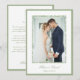 Featuring a soft ivory background, refined sage green border, and delicate leafy accents, this design blends classic romance with natural greenery charm. The graceful typography and minimalist layout create a warm, sophisticated way to thank your guests for celebrating your special day. Perfect for garden, classic, and modern weddings, this card coordinates beautifully with your full botanical invitation suite.