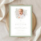 Elegant Sage Green Bow Photo Baptism Invitation. For best results upload a square image of the baby.