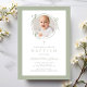 Elegant Sage Green Bow Photo Baptism Invitation. For best results upload a square image of the baby.