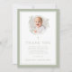 Elegant Sage Green Bow Religious Baptism Photo Thank You Card