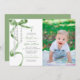 Elegant Sage Green Bow & Rosary Photo Baptism Invitation