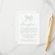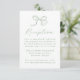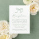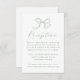 Set the tone for your wedding reception with this elegant sage green bow reception card. A soft green bow illustration and “Reception” in flowing calligraphy top this classic layout, giving space below for couples to include venue info and their wedding website. This card complements nature-inspired, garden, or minimalist weddings with a modern twist.