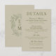 Elegant Sage Green Crest Monogram Wedding Details Enclosure Card