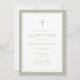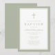 Elegant Sage Green Cross Boy Baptism Invitation