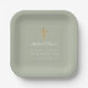 Custom Elegant Sage Green Cross First Holy Communion Paper Plates.