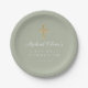 Elegant Sage Green Cross First Holy Communion Paper Plate