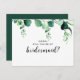 This sophisticated postcard is designed to pop the question: "Will You Be My Bridesmaid?" in a clean, modern, and natural style—horizontal flat card featuring a minimalist white background.