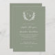 Elegant Sage Green Floral Crest Monogram Wedding Invitation