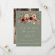 Set the tone for your big day with this elegant floral save the date card, featuring deep burgundy and blush blooms on a muted sage green background. The back includes space for your engagement photo, making this a romantic and personal choice for your fall or winter wedding. Customise with your names, wedding date, and personal details.