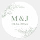 Elegant Sage Green Floral Wreath Monogram Wedding Classic Round Sticker