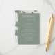 This elegant wedding details card features a soft mid-sage green background with customisable pale green typography, perfect for sharing essential information like reception location, accommodation details, and wedding website links. The reverse showcases a modern ginkgo leaf pattern, making it ideal for botanical, boho, rustic, minimalist, or nature-inspired wedding themes. A stylish and functional addition to your stationery suite.