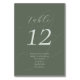 Elegant Sage Green Guest Names Script Wedding Table Number