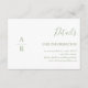 The 'Details' enclosure card from the 'Sage Green Line Art Blossoms Botanical Spring Wedding Collection' is a stunning example of minimalist elegance. The sage green script typography used to showcase the word 'Details' adds a touch of grace to your special day. The card also features the initials of the couple, making it a personalised keepsake. Additionally, the card includes the couple's wedding website for easy access to online details. This charming detail is sure to impress add a special touch to your wedding stationery.