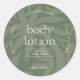 Take your product packaging to the next level with this modern round product label design featuring trendy tropical vibe background with a palm tree. The colours are pastel sage green and white text but you can customise all text and colours to suit your brand and product aesthetic. Whether you need labels for body lotion, sugar scrub, whipped body butter, moisturizer or any other product, this trendy circle sticker can be used on cosmetic jar lids, boxes or skincare bottles. More sizes and colours are available in the matching collection.