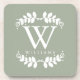 Elegant Sage Green Monogram Coaster