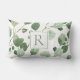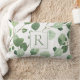 Elegant Sage Green Monogram Leaves Lumbar Cushion