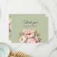 Elegant Thank you card featuring watercolor blush and ivory peonies with greenery on a soft sage green background. A timeless botanical design to express gratitude after your romantic wedding celebration.