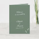A beautiful elegant formal script typography wedding design with a sage olive green background colour. A unique design that uses a personal classic calligraphy wedding invitation font and a hand drawn greenery leaf branch. A formal script calligraphy design with tones of sage olive green. An elegant wedding order of service program design with classic traditional elements. Matching wedding invitations and other stationery items are also available.