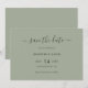 Announce your sage green wedding party with these minimalist, yet elegant save the date cards. Easily personalise online. Matching items available to complement this wedding save the date card with a modern script.