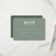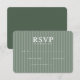 This wedding RSVP card features a modern, minimalist design with alternating light and dark green stripes in a muted sage palette. The clean layout includes elegant serif typography that guides guests through the response options, creating a formal yet approachable feel. Perfect for contemporary weddings, this card combines simplicity with sophistication, ensuring clarity and ease of use while maintaining an inviting tone.
