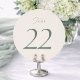 Elegant minimalist wedding table numbers featuring a refined sage green number design on a soft ivory background. These modern round table number signs are perfect for guiding guests to their seats while adding a stylish touch to your wedding reception décor.
