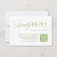 This refined RSVP card features sage green serif typography with a flowing script accent and a QR code for guests to respond online. Ideal for modern weddings that blend timeless elegance with digital convenience. Includes space for your wedding website and a deadline for replies. Perfect for formal garden weddings, summer celebrations, or traditional events with a modern touch.