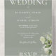 An all-in-one sage green wedding invitation featuring pretty greenery floral typography. The invitation includes a perforated RSVP card with your wedding website QR code. Designed by Thisisnotme©