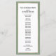 Provide your guests with this simply elegant wedding program design featuring modern script and black text with an artistic palm tree and metallic rose gold copper border. Customise it with your names, wedding date, thank you message and ceremony details. Wedding party names are on the back. A coordinating sage green background is on the front and back. Please contact me if you need help or a custom order.