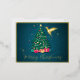 Elegant Sapphire Hummingbird & Christmas Tree Foil Holiday Postcard