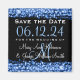 Elegant wedding "Save The Date" design with Party Sparkles Blue , and custom names and date text.