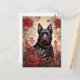An elegant postcard featuring a portrait of a Scottish Terrier dog, capturing its regal and dignified essence. The portrait exudes timeless charm and sophistication. With its alert expression, luxurious fur, and distinctive silhouette, this postcard offers a stylish way to send greetings or well-wishes to friends and loved ones. Whether used as a thoughtful gesture or as a keepsake for dog lovers, it celebrates the grace and beauty of the Scottish Terrier breed in an elegant and refined manner.