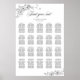 Elegant Calligraphy Scrip 20 Table Roses Wedding Seating Chart. Vintage Black & White Floral 20 Table Wedding Welcome Seating Sign