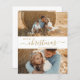Modern, Minimalist, Elegant „Merry Christmas” Script 2 Photo Collage Christmas Holiday Thin Card in gold and white. This festive, clear minimalist, twoo (2) family photo holiday card features a pretty grid photo collage and saying „Merry Christmas”! The „Christmas” greeting text script is written in a hand lettered swirly swash tail font type. On the back side one photo and your message. Pretty greeting card for your family and friends in Winter Holiday season.