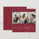 Elegant Script 3 Photo Collage Red Merry Christmas Holiday Card