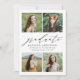 Invite guests to your graduation party in style with our Elegant Script photo graduation party invitation. The elegant graduation party invitations display four of your favourite photos framed in white with "graduate" in a black, modern calligraphy script. Personalise the invites by adding the graduate's name, school name, graduation year, and future plans. The back of the minimalist graduation party invites display your party details in white text against a solid black background.