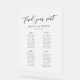 Classic Calligraphy Script Wedding Seating Plan with a translucent white background. Find Your Seat Sign. Personalised Simple Minimalist Seating Chart for 40 guests (4 tables). Just click the customise further link, shown under the text personalisation area on the right, and choose your custom colour background. This sign poster template makes it fast and easy to create stunning additions to your wedding decor. Signs can be enlarged, there are many sizes to choose from, as well as options for custom framing and matting.