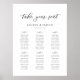 Classic Calligraphy Script Wedding Seating Plan. Welcome sign. Personalised Seating Chart for 60 guests. Just click the customise further link, shown under the text personalisation area on the right, and choose your custom colour background. This sign poster template makes it fast and easy to create stunning additions to your wedding decor. Signs can be enlarged, there are many sizes to choose from, as well as options for custom framing and matting.