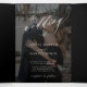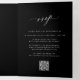 Modern simple stylish typography trendy black all in one budget affordable tri fold wedding invitation template with 2 photos, rsvp and details with scanning QR codes featuring a chic trendy calligraphy script and dark overlay. ++++++++++++ Easy to personalise with one or two custom photos (you can upload the same photo on both sides) and guest information on both sides! The invitation is suitable for classic formal contemporary weddings.