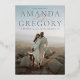 This chic and elegant Save the Date card features a full page photo and a sophisticated layout with the couples' names large and a beautiful script font reading "And" connecting their names in real rose gold foil. The blue colour palette of the type looks great against sky backgrounds but can be customised to work well with your photo. The back of this stylish photo save the date card has a space to add extra details or include the wedding website.