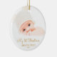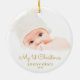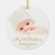 This round Christmas ornament offers a baby's first Christmas theme. The text "My 1st Christmas" appears in an elegant gold script. Custom text allows you to add the name and year of your newborn.