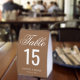 Elegant table number cards featuring cursive script.