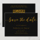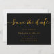 This elegant black-and-gold wedding save-the-date card is perfect for a modern wedding. The simple design features elegant gold calligraphy on a black background. The card also includes a QR code for the wedding website on the back.