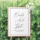 elegant black script, minimal black and white wedding, Cards and Gifts sign. The text and colours can be edited.