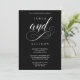 Announce your special day with timeless sophistication using this Elegant Script Black and White Wedding Invitation. This classic design features a crisp black background with your personalised wedding details beautifully presented in a combination of traditional serif and elegant white script fonts. The prominent 'and' flourish adds a touch of romantic charm. Perfect for formal, modern, or evening wedding themes, this customisable invitation sets a luxurious tone for your celebration, inviting guests to share in your joy.